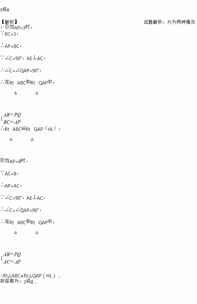 如图, 中, , 分别是上动点,且,当=_______时,才能使和全等.