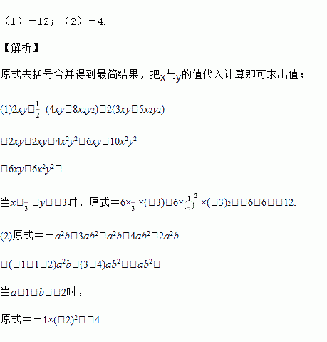 (1)2xy- (4xy-8x2y2)+2(3xy-5x2y2),其中x=,y=-3.