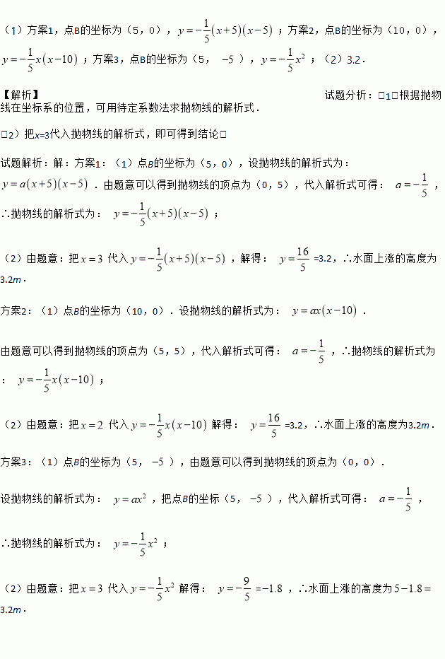 你选择的方案是_____(填方案一,方案二,或方案三),则B点坐标是______,求出你所选方案中的抛物线的表达式;