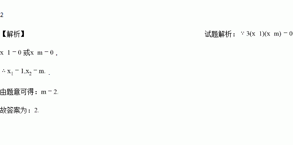 已知关于x的一元二次方程3(x﹣1)(x﹣m)=0的两个根是1和2,则m的值是________