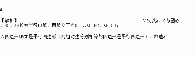 如图,点A是直线l外一点,在l上取两点B、C,分别以A、C为圆心,BC、AB长为半径画弧,两弧交于点D,分别连接AB、AD、CD,则四边形ABCD一定是【 】