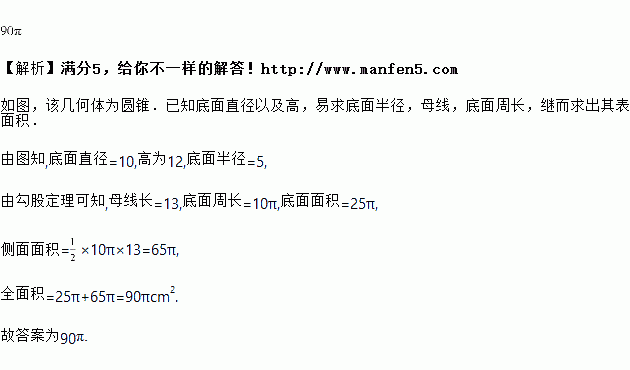如图是圆锥的主视图(单位),则其表面积为________.