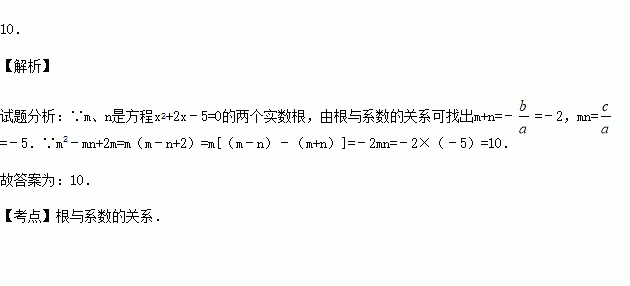 已知:m、n是方程x2+2x﹣5=0的两个实数根,则m2﹣mn+2m= .