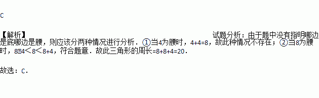 等腰三角形的两边长分别是4和8,则这个等腰三角形的周长为( )