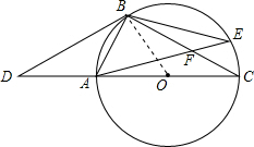 分析 (1)连接OB,如图,易证△OAB是等边三角形,则有∠BAO=∠BOA=∠ABO=60°,要证BD是⊙O的切线,只需证∠DBO=90°,只需证∠ABD=30°即可;