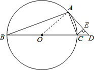 分析:(1)首先连接OA,由BC为⊙O直径,CE⊥AD,∠CAD=∠B,易求得∠CAD+∠OAC=90°,即∠OAD=90°,则可证得AD是⊙O的切线;