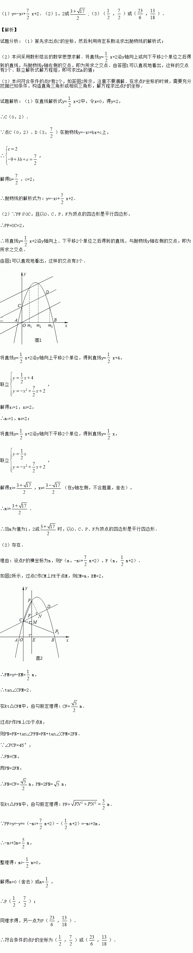 (3)若存在点P,使∠PCF=45°,请直接写出相应的点P的坐标.