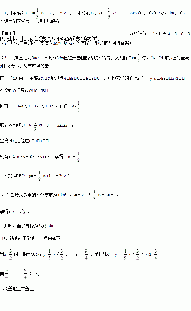 (3)如果将一个底面直径为3dm,高度为3dm的圆柱形器皿放入炒菜锅内蒸食物,锅盖能否正常盖上?请说明理由.