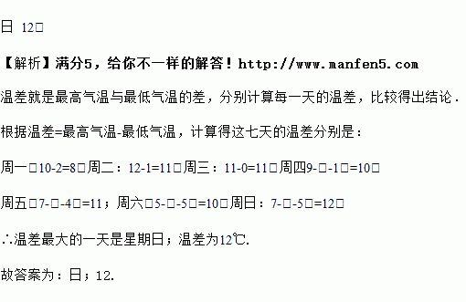 则温差最大的一天是星期_____;这一天温差为_____℃.