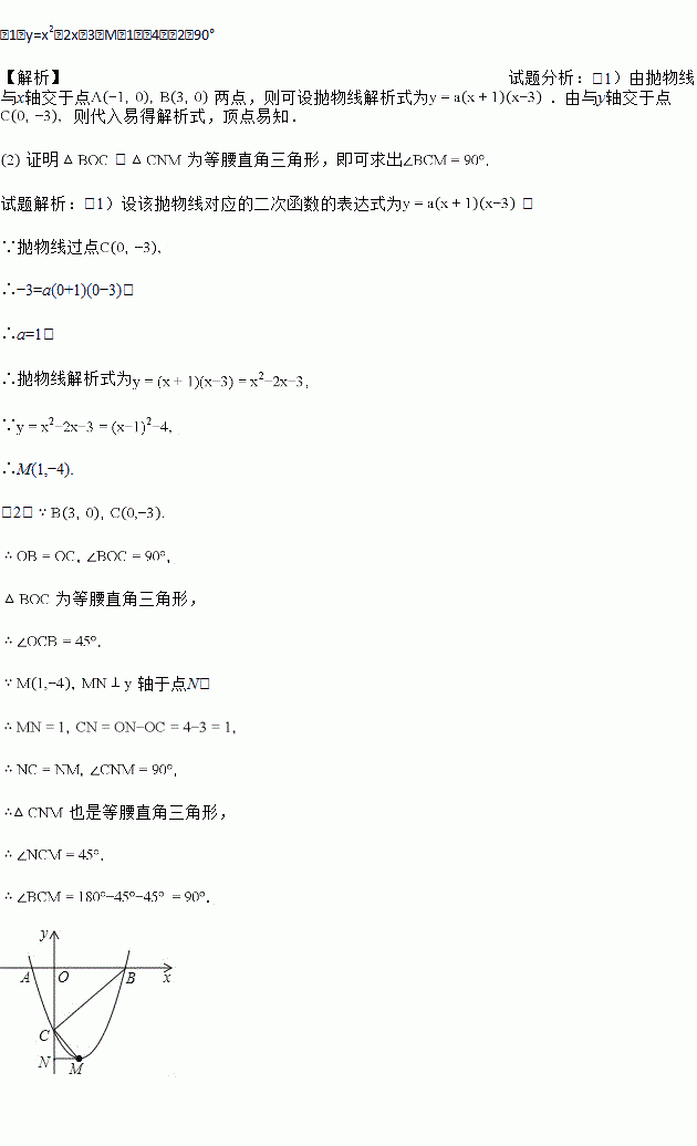 (1)求该抛物线所对应的二次函数的表达式及顶点M的坐标;