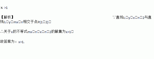 如图,直线l1:y=x+n-2与直线l2:y=mx+n相交于点P(1,2).则不等式mx+n<x+n-2的解集为______________.