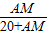 如图,路灯距离地面8米,身高1.6米的小明站在距离灯的底部(点O)20米的A处,则小明的影子AM长为    米.