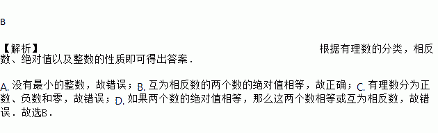 A. 最小的整数是0 B. 互为相反数的两个数的绝对值相等