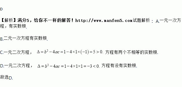 A. 3x+2=0 B. 2x+3y=5 C. x2+x﹣1=0 D. x2+x+1=0