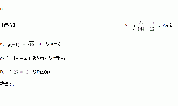 A. -4没有立方根 B. 1的立方根为±1