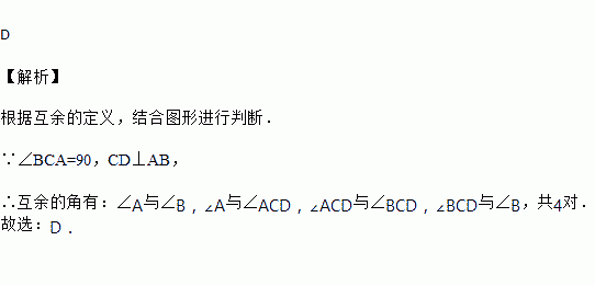 如图∠BCA=90,CD⊥AB,则图中互余的角有( )对.
