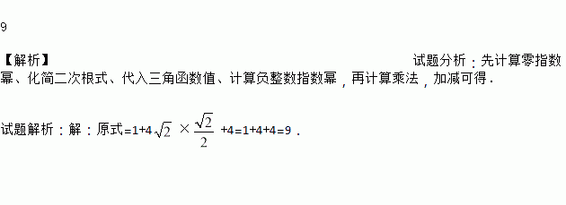 计算:(-π)0+ cos45°+( )-2.