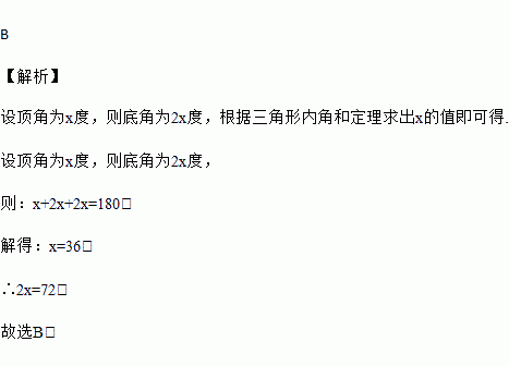 若等腰三角形的底角是顶角的2倍,则这个等腰三角形的底角的度数是( )