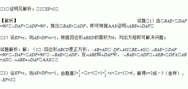 (2)若AF=1,四边形ABED的面积为6,求EF的长.