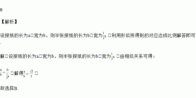 如果整张报纸与半张报纸相似,则此报纸的长与宽的比是( )