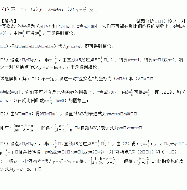 (2)M、N是一对“互换点”,若点M的坐标为(m,n),求直线MN的表达式(用含m、n的代数式表示);
