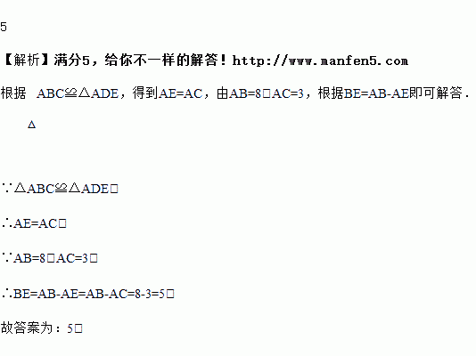 如图,已知△ABC≌△ADE,若AB=8,AC=3,则BE的值为______.