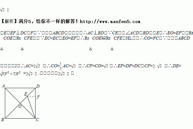 如图,已知正方形ABCD的边长为1,连接AC,BD,CE平分∠ACD交BD于点E,则DE=_________.
