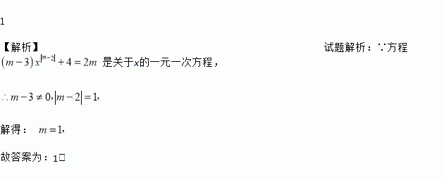 已知方程(m﹣3)x|m﹣2|+4=2m是关于x的一元一次方程,则m=_____.