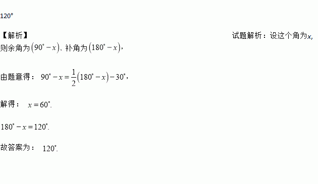 一个角的余角比这个角补角的少30°,则这个角的补角的度数是_______.