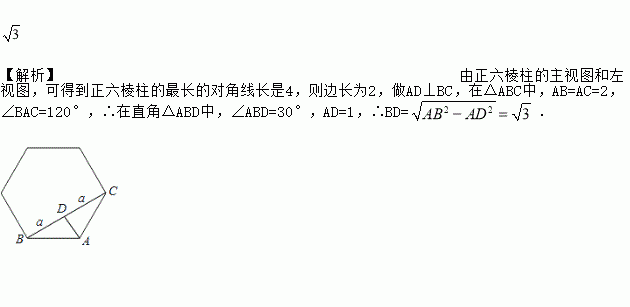 如图是一个正六棱柱的主视图和左视图,则图中的a= .