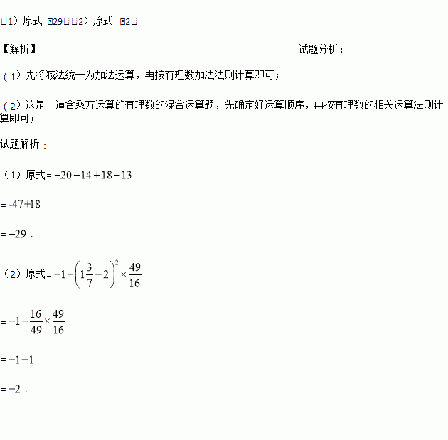 ⑴-20+(-14)-(-18)-13 ⑵ -12-[1+(-12)÷6]2×(-1)2.