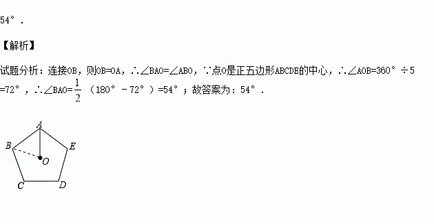 (3分)如图,点O是正五边形ABCDE的中心,则∠BAO的度数为 .