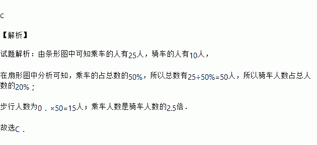 A. 该班总人数为50 B. 骑车人数占总人数的20%