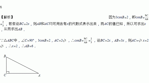 已知在△ABC中,∠C=90°,3cosB=2,AC=2