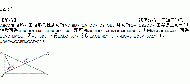 如图,在矩形ABCD中,对角线AC与BD相交于点O,过点A作AE⊥BD,垂足为点E,若∠EAC=2∠CAD,则∠BAE=__________度.