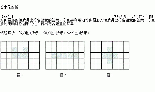 答案见解析. 【解析】试题分析:①直接利用轴对称图形的性质得出符合题意的答案;②直接利用轴对称图形的性质得出符合题意的答案;③直接利用轴对称图形的性质得出符合题意的答案. 试题解析:①如图1所示: ②如图2所示:③如图3所示: