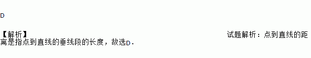 D 【解析】试题解析:点到直线的距离是指点到直线的垂线段的长度,故选D.