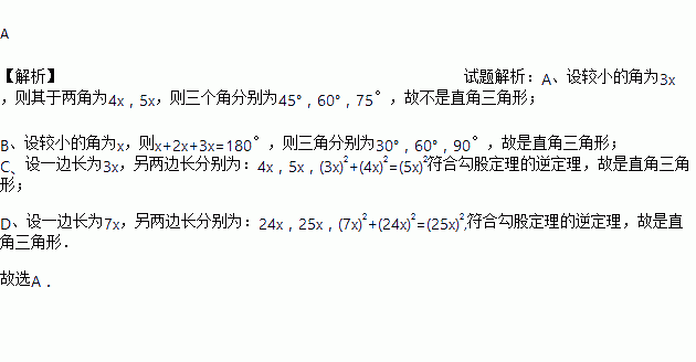 C. 三边的比为3:4:5 D. 三边的比为7:24:25