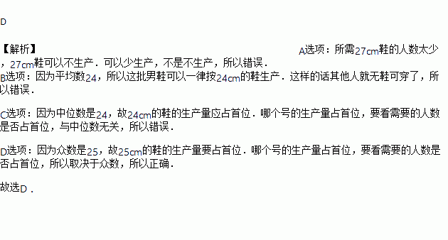 D. ÒòΪÖÚÊýÊÇ25 cm£¬ËùÒÔ25 cmµÄЬµÄÉú²úÁ¿Ó¦Õ¼Ê×λ