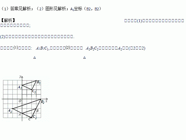 (2)以点C为位似中心,在网格中画出△A2B2C2,使△A2B2C2与△ABC位似,且△A2B2C2与△ABC的位似比为2:1,并直接写出点A2的坐标.