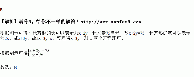 如图,用10块相同的矩形墙砖并成一个矩形,设矩形墙砖的长和宽分别为x厘米和y厘米,依题意列方程组正确的是( )