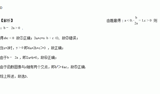 已知二次函数y=ax2+bx+c(a≠0)的图象如图,有下列5个结论:①abc<0;②3a+c>0;③4a+2b+c>0;④2a+b=0;⑤b2>4ac.其中正确的结论的有( )