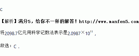 2017上半年,四川货物贸易进出口总值为2 098.7亿元,较去年同期增长59.5%,远高于同期全国19.6%的整体进出口增幅.在“一带一路”倡议下,四川同期对以色列、埃及、罗马尼亚、伊拉克进出口均实现数倍增长.将2098.7亿元用科学记数法表示是( )