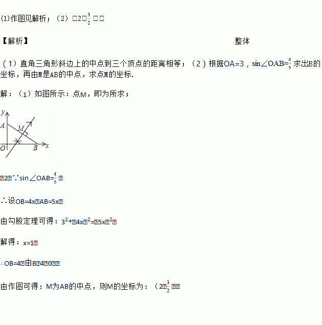 (1)在坐标系中求作一点M,使得点M到点A,点B和原点O这三点的距离相等,在图中保留作图痕迹,不写作法;