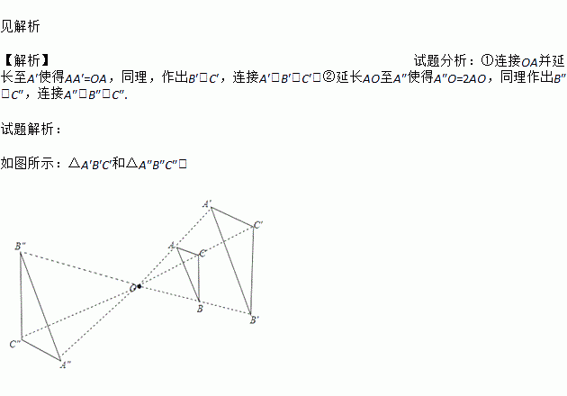 如图,以O为位似中心,将△ABC放大为原来的2倍.