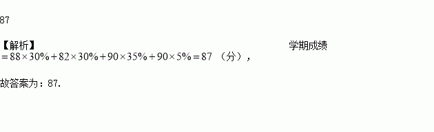 小亮本学期数学的平时作业、期中考试、期末考试及数学综合实践活动的成绩分别是分、分、分和分,各项占学期成绩的百分比分别为、、、,则小亮的数学学期成绩是__________分.