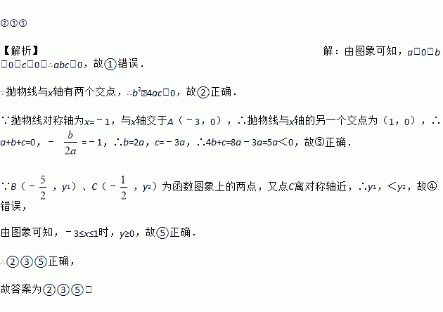 ,y2)为函数图象上的两点,则y1>y2⑤当﹣3≤x≤1时,y≥0,