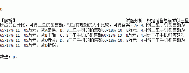 D. 3月份与4月份的三星手机销售额无法比较,只能比较该店销售总额