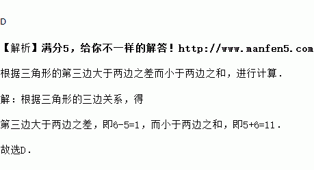 若三角形两边长分别是6、5,则第三条边c的范围是( )