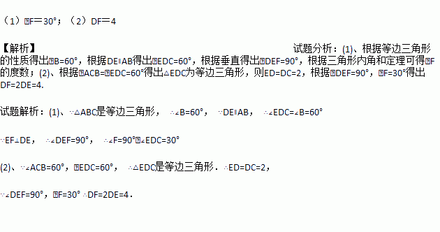 如图,在等边△ABC中,D、E分别在边BC、AC上,且DE∥AB,过点E作EF⊥DE交BC的延长线于点F.